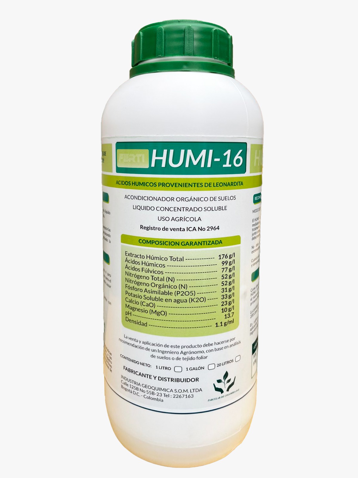 HUMI-16 es una enmienda líquida que mejora la estructura y fertilidad del suelo. Contiene ácidos húmicos y fúlvicos que aumentan la retención de agua y nutrientes, favoreciendo un crecimiento saludable y sostenible de las plantas.
